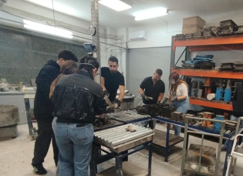 Στη συνέχεια παρήχθησαν κανονικά 3 εργαστηριακά μείγματα σκυροδέματος. Οι φοιτητές συμμετείχαν στην παραγωγή αλλά κυρίως στον έλεγχο ποιότητας, δηλαδή, δοκιμή κάθισης, πυκνότητας και περιεκτικότητας σε αέρα. Επίσης σκυροδέτησαν δοκίμια, δηλαδή λίγο πολύ ότι θα έκαναν σε ένα έργο, κατά τη σκυροδέτηση. Τέλος δοκίμασαν σε θλίψη έτοιμα δοκίμια σκυροδέματος.